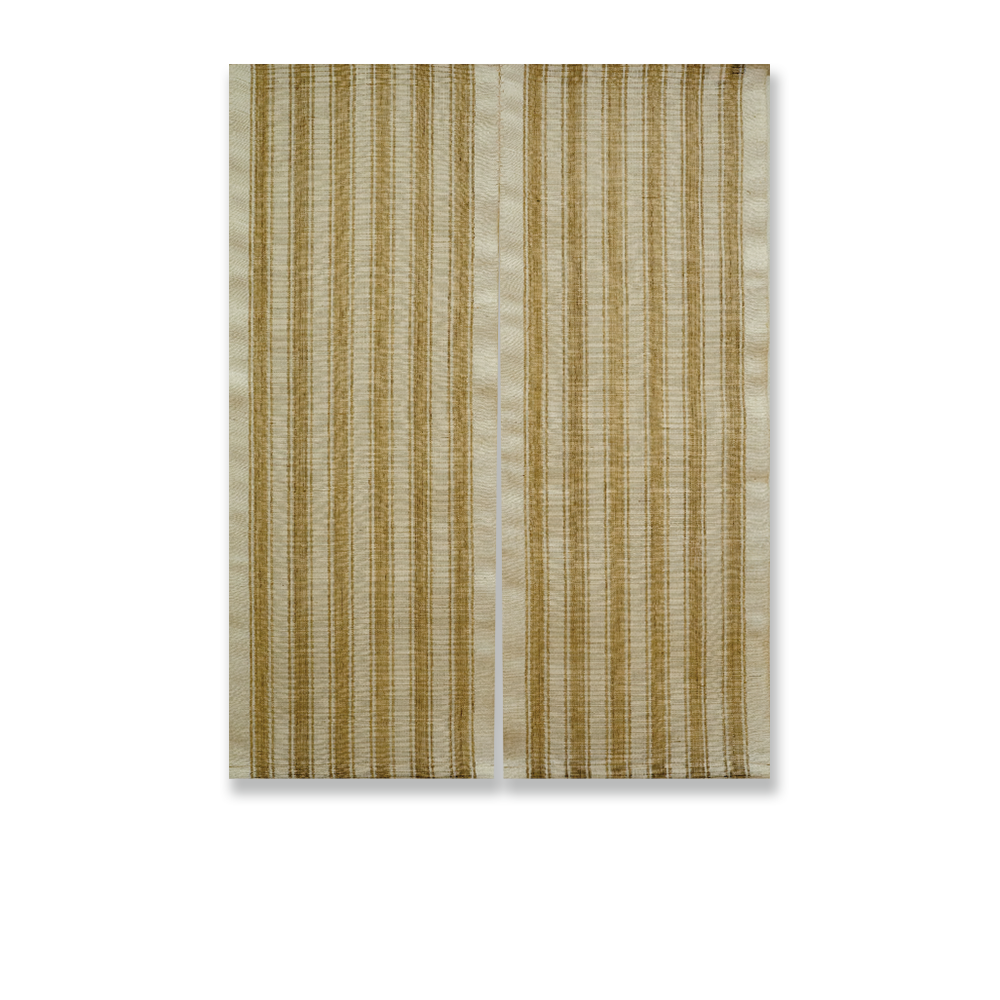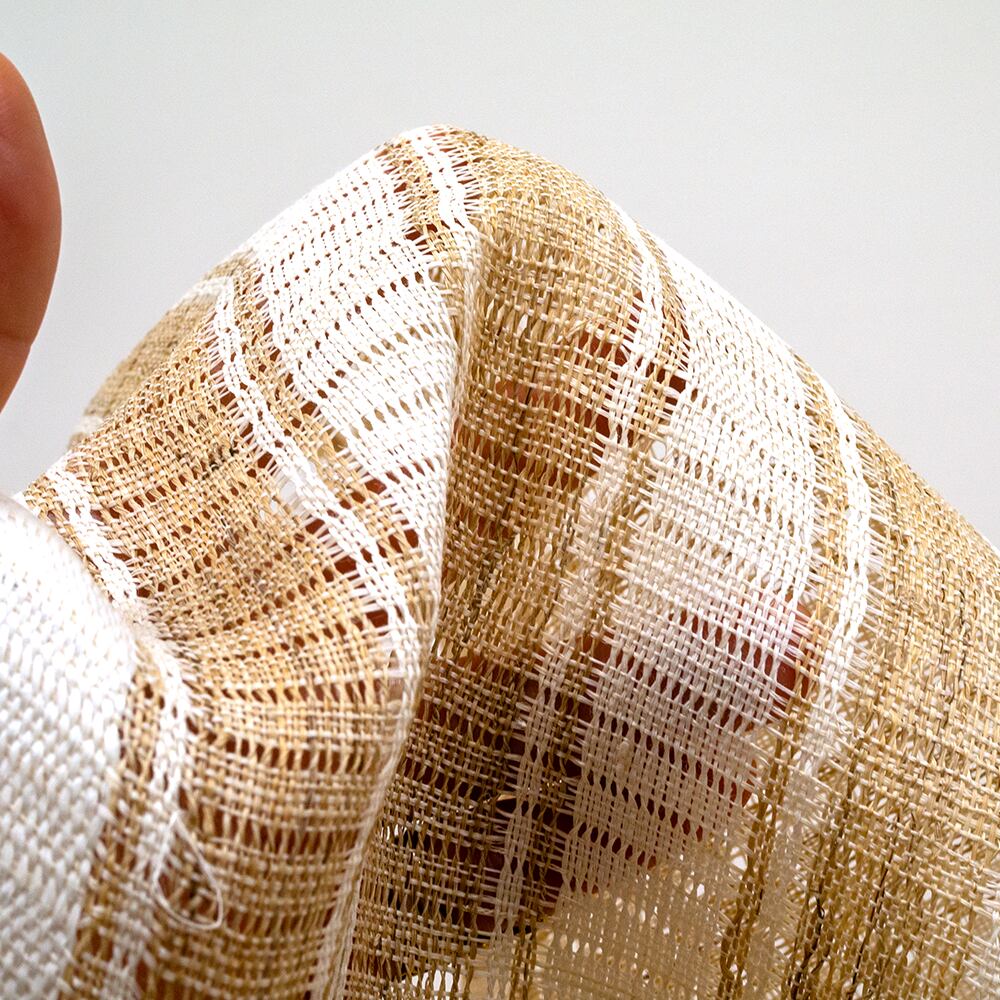 自然な風合いを残した麻糸を使用してストライプや透かしなどを織で表現貴重なものとなります。麻 100% のシャリッとした手触りとしっかりした腰とハリ、美しい透け感のある生地です。