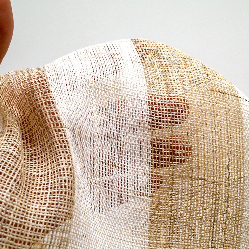 自然な風合いを残した麻糸を使用してストライプや透かしなどを織で表現貴重なものとなります。麻 100% のシャリッとした手触りとしっかりした腰とハリ、美しい透け感のある生地です。