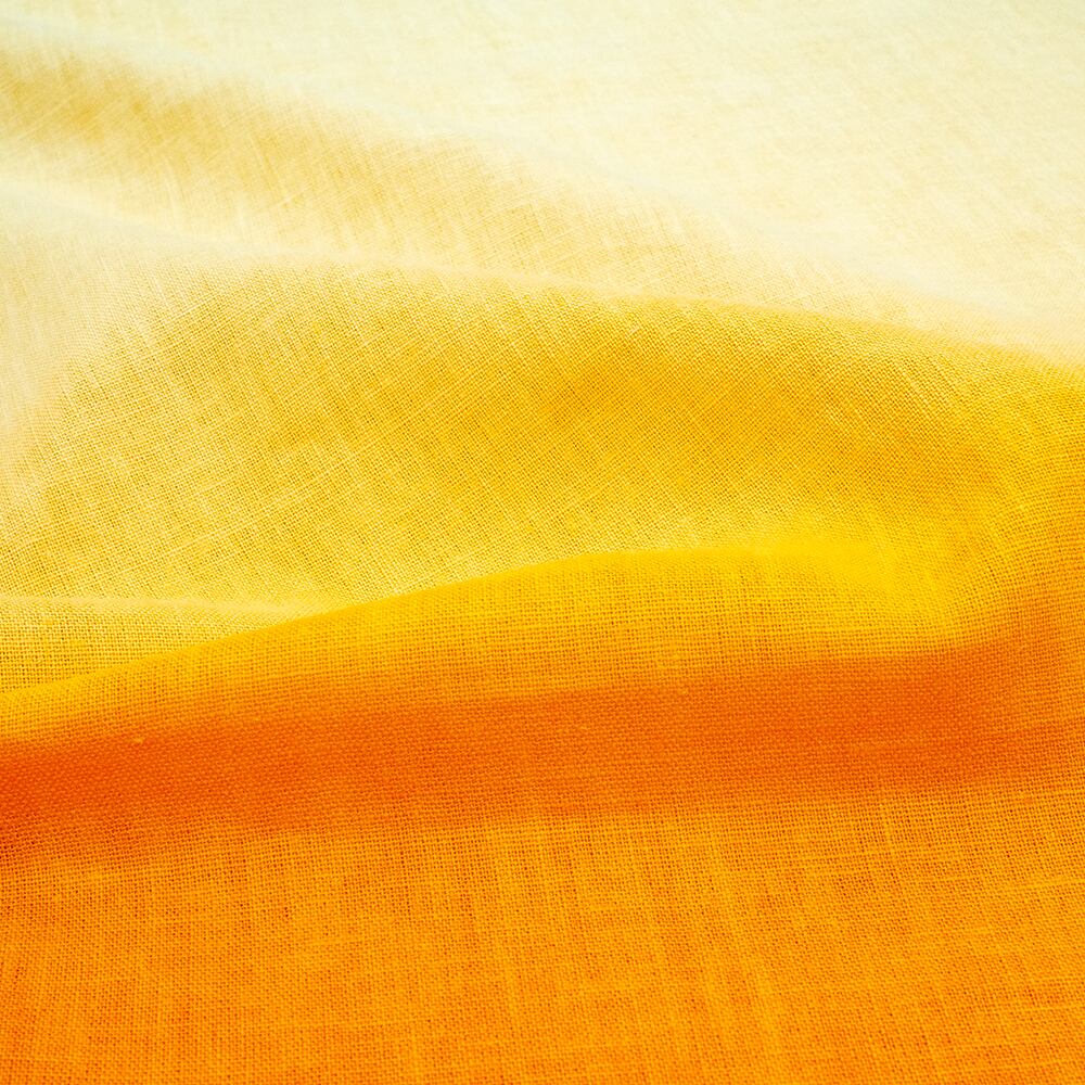 引き染めとは、独特のグラデーションが表現できる友禅染めの技法です。本物の麻だからこその変則的な濃淡がある糸色と、太さ違いの糸が織りなす透け感が、職人が一枚一枚刷毛で染め上げる引き染めの水彩画のようなタッチと相まって涼しげな印象を振り撒きます。