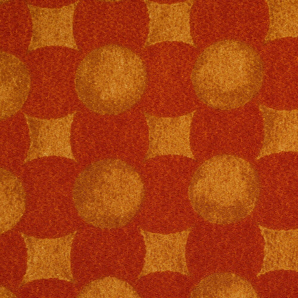 永遠に繋がる円と星。時には花やクロスに見える不思議なその模様は【南蛮七宝】と呼ばれ、その昔、南蛮貿易で届いた品に施されていた柄を京の唐紙師が模様として図案化したとか。幸せが四方八方へと繋がる「縁つなぎ」「繁栄」「円満」を願う吉祥紋様です。同じ模様の繰り返しながらよく見ると様々な濃淡が入っています。陽光を感じるオレンジ色と、満点の星空のような紺色をご用意しました。生地はちりめん織りで柔らかく細かな凹凸が手に心地よく、撥水加工でお手入れのしやすい素材です。