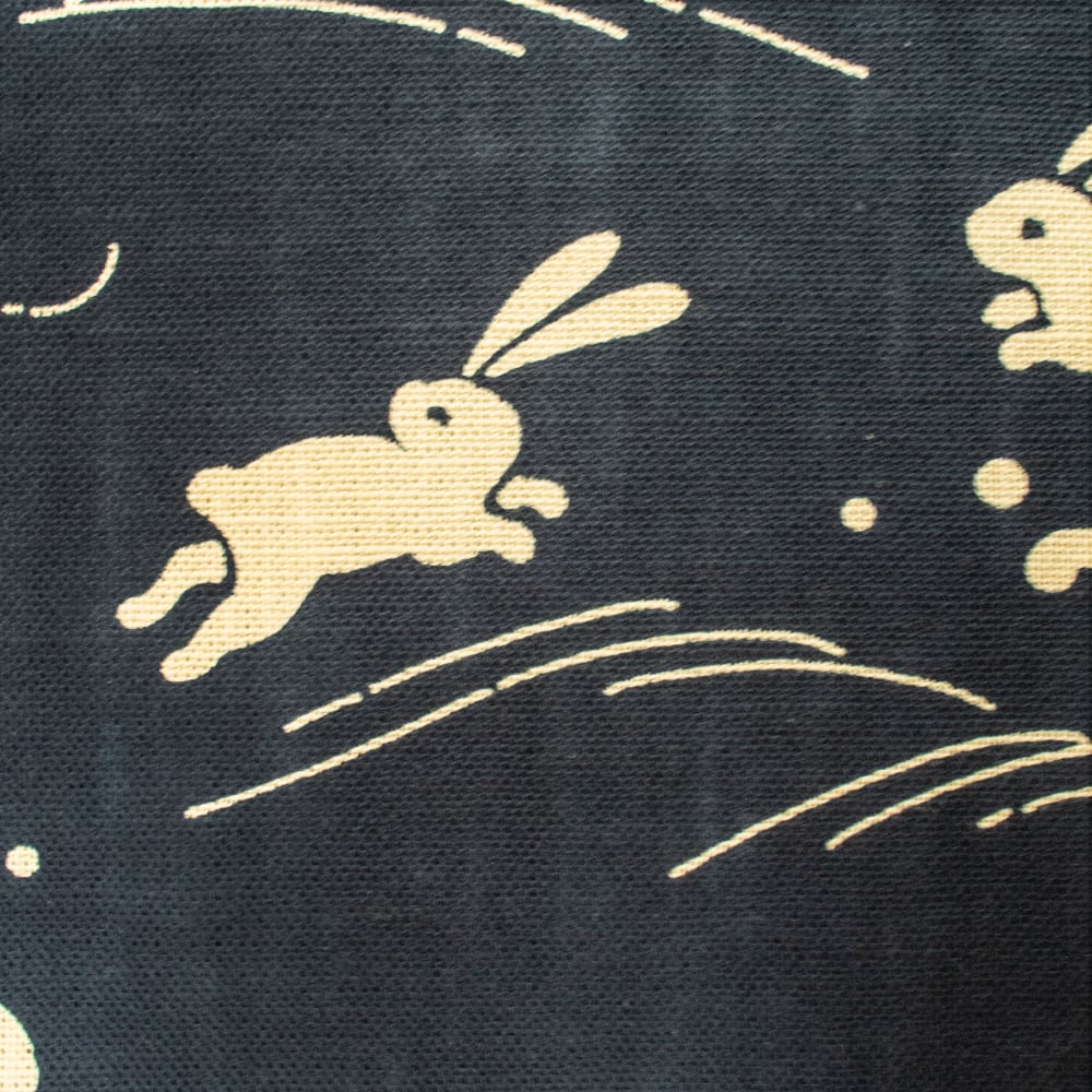 ざっくりとした織り目に柔らかな手触りが人気の「変わり織り」に、自然なムラ感が魅力のおぼろ染で染めました。波に飛び跳ねる兎は飛躍や発展、子だくさんなことから子孫繁栄、長い耳は福を集める・・・さらに無限に広がる波は未来永劫へ続く幸せの象徴と吉兆のオンパレード!ご自宅はもちろん、お店の入り口に掛けて商売繁盛!